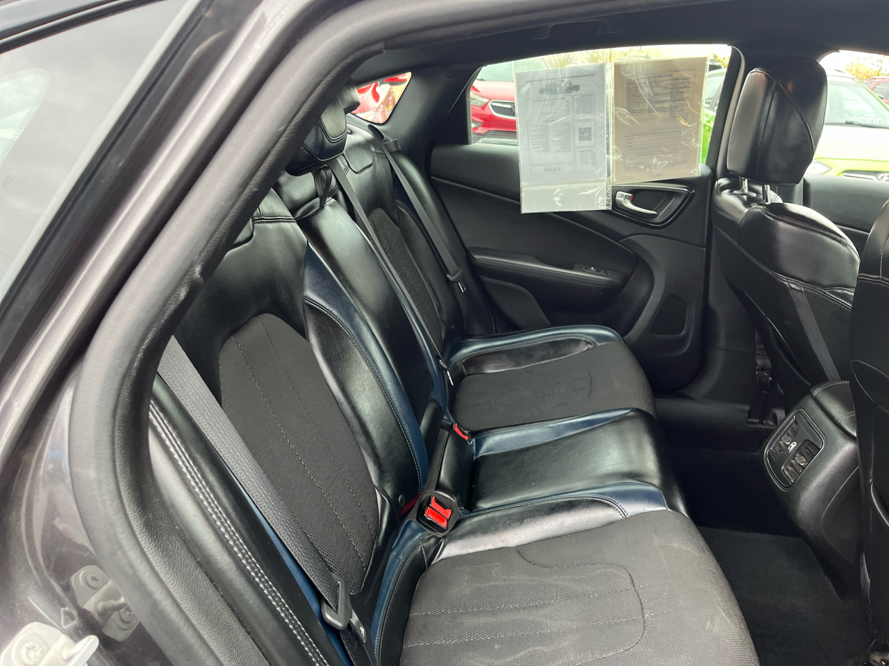 • black front windshield trim and black rear window trim